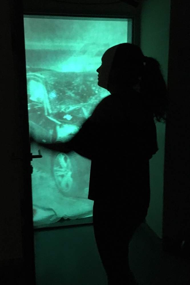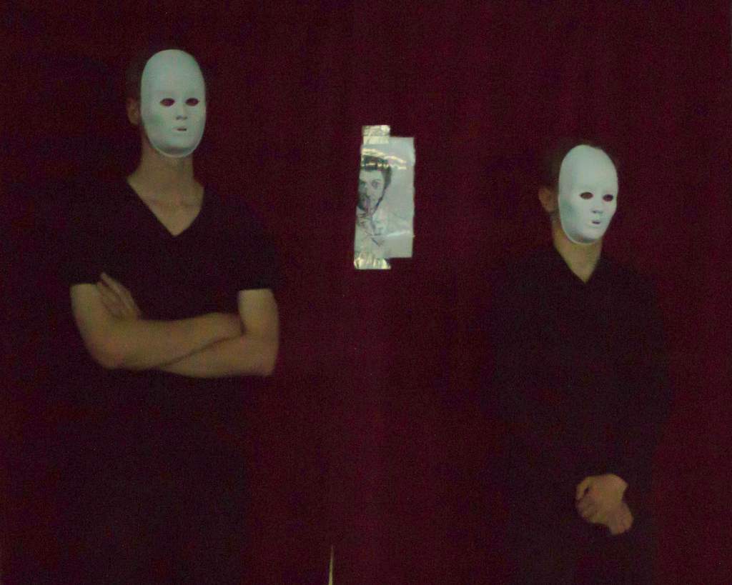 In „Wahrheit II“ wird man wiederum mit einer Collage an visuellen und auditiven Eindrücken konfrontiert. Die weiß maskierten strahlen Unsicherheit, Angst und Verzweiflung aus, füllen den Raum mit ihrer Körperlichkeit. In den Türrahmen liest man das „Vater unser“, sieht einen Unfallwagen, ein Kreuz. Man sieht einen Menschen, der von hinten mit einer Schere ermordet wird. Man hört Stimmen – ist es eine oder sind es mehrere? – die von einem Unfall erzählen. Aus ihrer Sicht. Aus unterschiedlicher Sicht. Und die Wahrheit? Man weiß es nicht. Aber es geht auch nicht ums Verstehen.