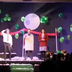 Ein sehr angenehmer Theaterabend ist zu Ende. Wieder müssen wir Wochen und Monate warten, bis ein neues Stück an unserer Schule gezeigt wird. Schade, dass es so lange dauert, aber die Erfahrung zeigt, dass am E.T.A. immer Theaterluft durch die Gänge wehen wird – zum Glück...!