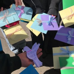 Die Klassen hatten sich zuvor mit den Friedensvisionen der Propheten Jesaja und Micha beschäftigt, die eine Zukunft voller Harmonie und Versöhnung versprechen: Dann wohnt der Wolf beim Lamm (Jes 11,6) und Schwerter [werden] zu Pflugscharen umgeschmiedet (Mi 4,3). Inspiriert von diesen prophetischen Botschaften entstand die Idee, an der Aktion Gift a Poem teilzunehmen und Friedensbotschaften zu verbreiten.