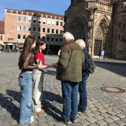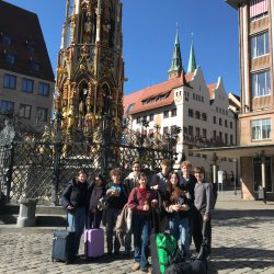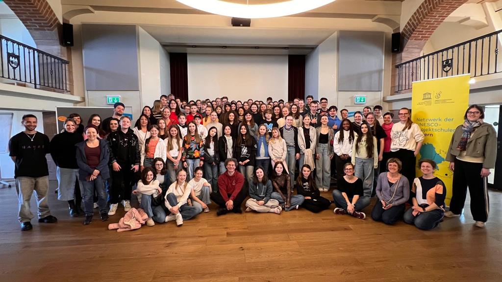Vom 19. bis zum 21. März 2025 fuhren wir, neun Schülerinnen und Schüler des UNESCO Parlaments, mit Frau Tschuschke zum Jugendforum, ein Begegnungsformat für alle UNESCO-Schulen in Bayern. Direkt bei unserer Ankunft wurden wir im historischen Rathaussaal der Stadt Nürnberg vom Oberbürgermeister Herrn König und vielen anderen Rednerinnen und Rednern als auch einigen famosen musikalischen Beiträgen begrüßt. Unsere Unterkunft auf der Kaiserburg hat zum Austausch und gemeinsame Spielen eingeladen und einen tollen Blick aus unseren Zimmern geboten. In verschiedensten Workshops haben wir viel über die Themen Demokratie, Partizipation und Diskriminierung gelernt. Zum Beispiel gab es einen Workshop, in dem für die Demokratie gerappt wurde, oder ein Planspiel, in dem wir den Prozess in der europäischen Union, Gesetze zu beschließen, näher kennen gelernt haben. Ein weiterer Workshop hat uns über Queer-Feindlichkeit und Wege, diese zu bekämpfen aufgeklärt. Außerdem haben wir Freundschaften geknüpft und uns mit vielen Schüler*innen aus ganz Bayern über unsere UNESCO-Arbeit an der Schule ausgetauscht. Den Heimweg zum Bahnhof haben wir am letzten Tag genutzt, um am Welttag der Poesie Menschen mit selbstgeschriebenen Gedichten zu überraschen und zu beglücken. So haben wir an einer europaweiten Aktion aller UNESCO-Schulen teilnehmen können. Es war für uns alle eine wundervolle und bereichernde Erfahrung und wir sind sehr froh, dabei gewesen zu sein.