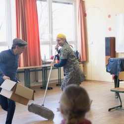 Am Dienstag 18.3. hatten wir einen Friedenstag in der Schule. Es fand ein schulweiter Friedenslauf statt, in dem wir Spenden für den Frieden gesammelt haben. Außerdem bekam jede Klasse einen Workshop von den ReferentInnen und Referenten von ProPeace. In unserem Workshop sollten wir uns zunächst überlegen, wenn wir fliehen würden und wir nur drei Sachen mitnehmen durften, welche wäre das? Es war eine schwierige Aufgabe, denn entweder nimmt man drei nützliche Gegenstände mit (z.B. ein Feuerzeug, ein Taschenmesser oder eine Decke) oder man nimmt drei persönliche Deinge mit (z.B. ein Kuscheltier, ein Foto oder ein Glücksbringer). Im Anschluss haben wir uns überlegt, wie wir Flüchtlingen helfen können. Man könnte sie zu Hause aufnehmen, Kindern Spielzeug kaufen, Geld- und Klamottenspenden sammeln, oder ihnen auch psychologische und medizinische Hilfe besorgen, wenn sie diese brauchen. Dann haben wir verschiedene Organisationen kennengelernt, welche sich um Flüchtlinge kümmern. Sie versorgen diese mit Essen und mit vielen weiteren Dingen. Sie kümmern sich vorallem um die Kinder und alte Menschen. Auch den Eltern helfen sie bei der Jobsuche, beim Finden eines geeigneten Sprachkurses und einer Unterkunft.An diesem Tag haben wir sehr viel darüber gelernt, wie man Flüchtlingen hilft und wie schwer es für sie ist, hier bei uns Fuß zu fassen.